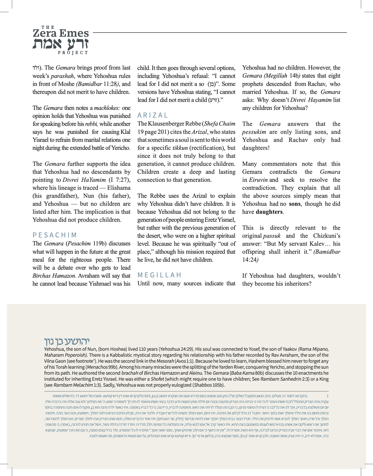 Did Yehoshua ben Nun have children?
